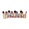 Felt crown in a striped pattern, measures 22" in circumference. Hand-washing in cold water is recommended.